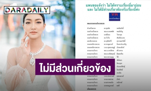 “แพนขอแจ้งว่าไม่ทราบเรื่องนี้มาก่อน ไม่ได้มีส่วนเกี่ยวข้องกับเรื่องนี้ค่ะ”