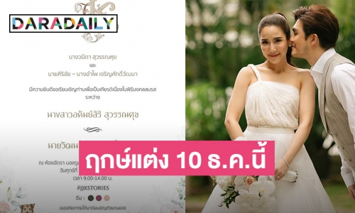 ล่าสุดทางด้านสาว “จั๊กจั่น” ได้เผยกำหนดการพิธีมงคลสมรสและงานฉลองมงคลสมรส ซึ่งจะขึ้นในเดือนธันวาคมที่จะถึงนี้ ณ โรงแรมสยามเคมปินสกี้ กรุงเทพฯ และถ้าย้อนกลับไปเมื่อช่วงพฤษภาคมที่ผ่านมานั้น ทั้งคู่ก็ได้ควงกันจดทะเบียนสมรสแล้วเมื่อ 28 พฤษภาคม