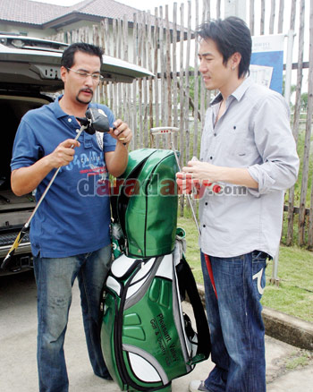 นักแสดงอารมณ์กรึ่ม "โอลิเวอร์ บีเวอร์" ใจดีหอบถุงไม้กอล์ฟมาอวด เอ๊ย! มาให้ "เจ-เจตริน" ได้ลองมือ