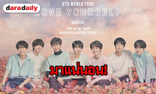 ใหญ่กว่านี้ไม่มีอีกแล้ว มีที่นี่ที่เดียวเท่านั้น! ไอเอ็มอี โปรดักชันส์ จำกัด หรือ ไอมี่ไทยแลนด์ ( iMeThailand ) คว้าตัวบอยแบนด์แดนกิมจิ เบอร์ท็อปฮอตเว่อร์ที่ตอนนี้เรียกว่าโด่งดังระดับโลกไปแล้ว กับ 7 หนุ่ม BTS อาร์เอ็ม (RM), จิน (Jin), ชูก้า (Suga), เจโฮป (J-Hope), จีมิน (Jimin), วี(V) และ จองกุก (Jungkook) จากค่าย Bighit Entertainment กลับมาระเบิดความมันส์แบบไร้ขีดจำกัดอีกครั้ง ในงาน BTS WORLD TOUR ‘LOVE YOURSELF’ BANGKOK วันเสาร์ที่ 6 เมษายน 2562 ณ ราชมังคลากีฬาสถาน โดย BTS ถือเป็นไอดอลเกาหลีวงแรกที่จัดคอนเสิร์ตเดี่ยวที่สนามกีฬาที่ใหญ่ที่สุดในประเทศไทยแห่งนี้ และยังเป็นการสร้างประวัติศาสตร์หน้าใหม่ให้วงการเคป็อปในประเทศไทยอีกด้วย
