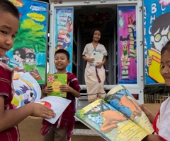 ยูนิเซฟส่งรถห้องสมุดเคลื่อนที่สร้างนิสัยรักการอ่านที่โรงเรียนบ้านห้วยผึ้ง แม่ฮ่องสอน